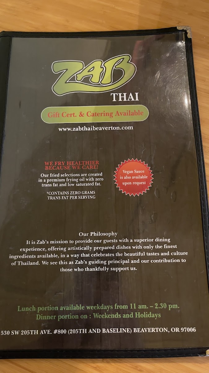 Welcome to Zab Thai Cooking, nestled in Beaverton, Oregon, where authentic Thai flavors come to life! With rave reviews from satisfied customers, this restaurant is a hidden gem for those seeking delightful dishes that tantalize the taste buds.